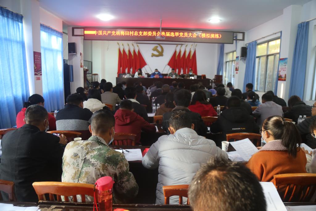 会上,以杨梅田村为例,对村党组织换届选举党员大会进行了全过程展示,包含奏国歌、通过党员大会议程、本届委员会作工作报告、通过选举办法草案、竞职演说、清点分发选票、公开唱票计票、公布选举结果等情景……做到了法定程序一个不变、规定步骤一个不减,使在场人员参与每个环节,熟知选举操作程序,达到预期演练效果。同时,工作人员就换届选举过程中可能遇到的重点难点问题分析解答,并就村委换届做培训。会议要求:一是思想认识再提高;二是工作措施再细致;三是选举流程再公正;四是换届纪律再严肃;五是风险防范再强化。
