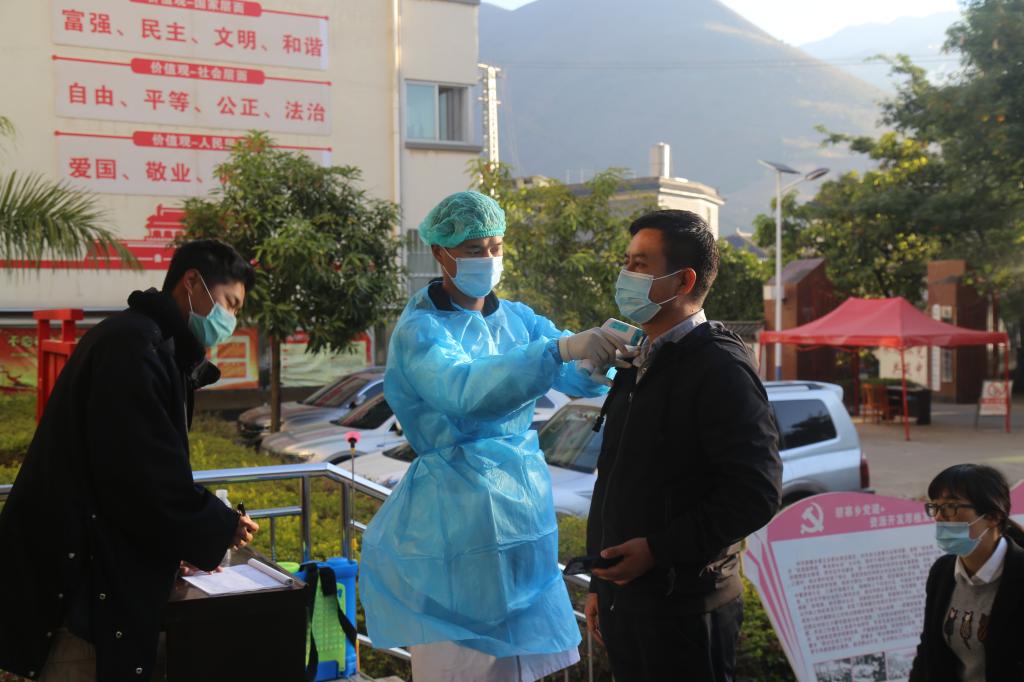 选举前,工作人员对会场进行全方位消毒,并在会场前设置一米安全距离指示牌和扫码登记工作台,工作人员依次给参会人员量体温、引导扫码、信息登记并嘱咐疫情防控相关注意事项,参会人员顺序进入会场。