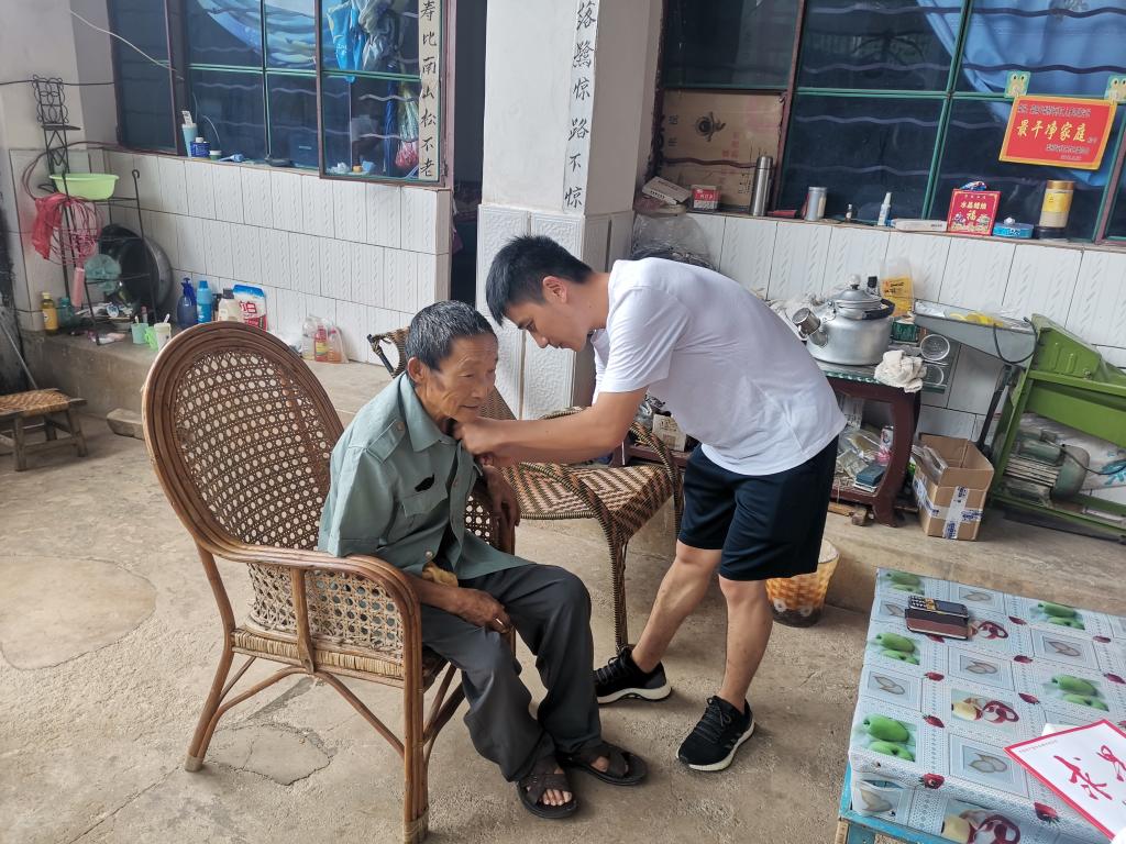 送教上门暖人心。碧寨乡青年人才党支部将“为民办实事”与党史学习教育紧密结合,通过与梨树坪党总支部结合,对行动不便或者学习有困难的老党员送教上门,给他们佩戴党员徽章、读党史,让青年党员与老党员进行思想交流,一起重温历史,感悟初心。
