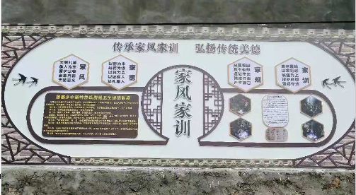 强调成风化人。因户所需,将“勤俭、治学、处事、励志、修养”等内容请上“门面”,成为家训,并以训自省、以训育人,形成户户爱国爱家、尊老爱幼、互帮互助、自力更生的讲新风格局。同时,创新开展“家风会”,让大家说家风,聊家训,讲社会主义核心价值观等,促进村民整体素质提高。达到以“家风带民风,以民风促乡风”的效果,进一步推动乡风文明建设向纵深发展。