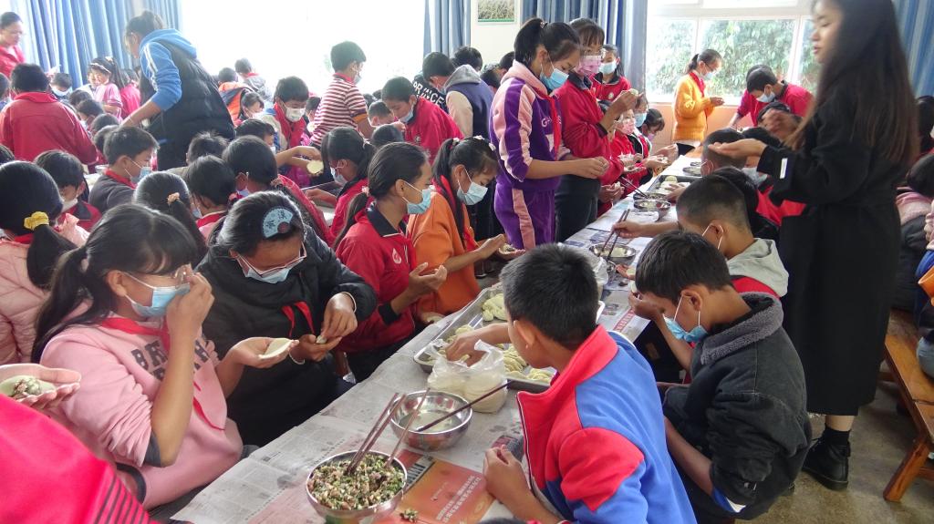 为了丰富同学们的课余生活,增强班级的凝聚力,提高同学们的动手能力,12月27日,龙陵县摆达希望小学组织全体师生共同进行了包饺子活动。