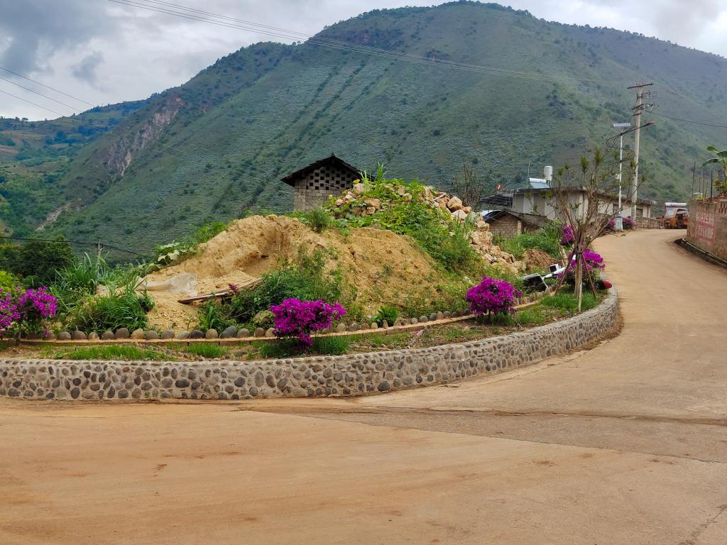 碧寨村坚持把农村人居环境整治作为乡村振兴的硬任务,动员各方力量积极参与,整合各类资源强化保障,清垃圾、改厕所、治污水,着力提升农村人居环境质量,加快建设生态宜居美丽乡村。一是人居环境整治立竿见影。碧寨村集中精力在全村开展人居环境整治,集中攻坚了一批农村环境卫生中的老大难问题。实行“户分类、组收集、村清运”的农村生活垃圾处理模式,将村庄保洁、公厕维护纳入公益性保洁员管护范围,切实提高保洁能力。科学有序推进农村改厕工作,全村累计建成农户卫生厕所354座,普及率达到99.7%,建成卫生公厕7个,人居环境得到较大提升。二是增绿添美扮靓村庄。2022年以来,碧寨村因地制宜,对进村通组道路、房前屋后空地进行清理,制定村庄绿化美化行动计划,用砖和瓦片修建特色围墙187.69平方米,种植三角梅145盆、紫薇花2盆、芒果130棵,既改善了村庄环境,也让家门口成为了增收致富的“宝地”,切实实现了经济效益和生态效益的有机统一。城墙山路口用鹅卵石镶嵌的党徽,表达了党员群众“听党话、感党恩、跟党走”的信心与决心。