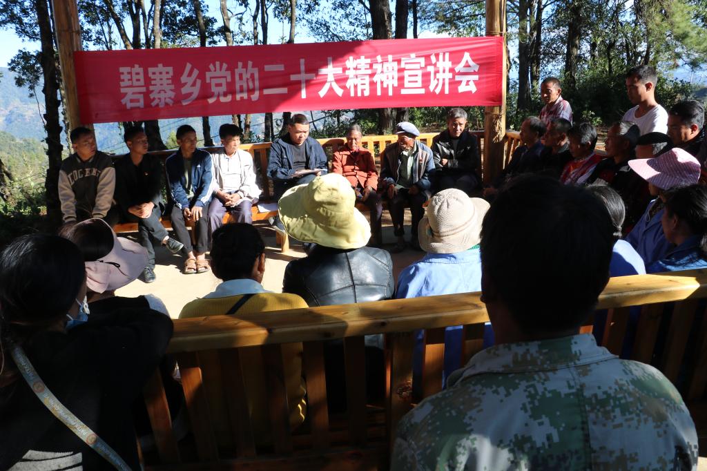 为深入学习宣传贯彻党的二十大精神,切实把党员干部和各族群众的思想统一到党的二十大精神上来,把力量凝聚到党的二十大确定的各项目标任务上来,碧寨乡充分发挥宣讲团、领导干部、驻村工作队等“宣传员”作用,迅速组织党的二十大精神进机关、进村(社区)、进支部、进校园、进集市、进农户“六进”宣讲活动,让党的二十大精神在基层迅速升温。