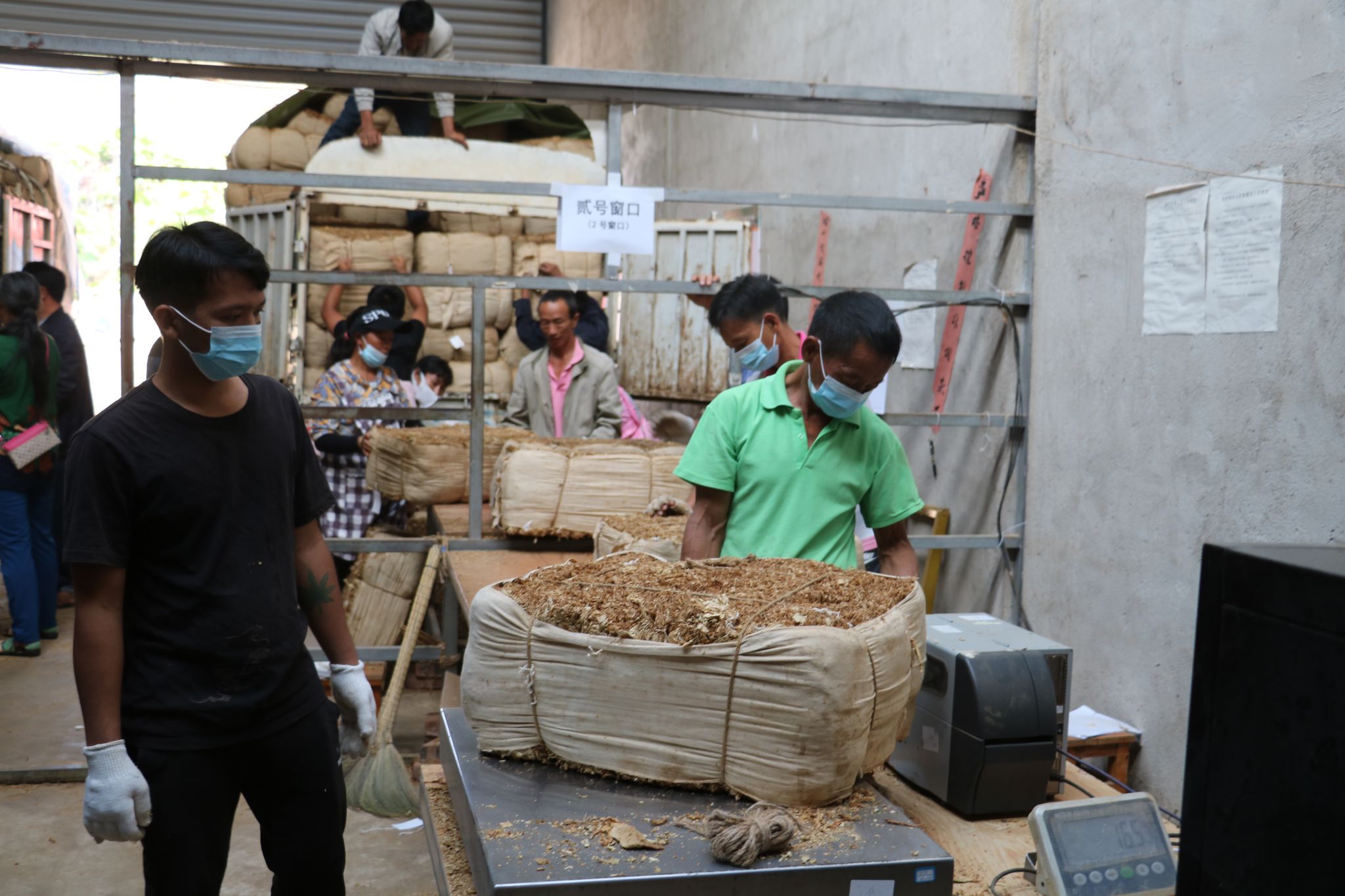 收购线上,一捆捆通过预检的烟叶被送往验级区定级,工作人员在操作台前耐心细致地按标准给香料烟检质、定级、过磅、上标签,每评验完一件就进行装车一件。整个收购工作有序进行着,广播不停地播报着每一包烟叶的重量,全过程各环节都在公开、透明下进行,看着自家烟叶定级、过磅最后自己拿到票据,烟农们个个喜笑颜开。