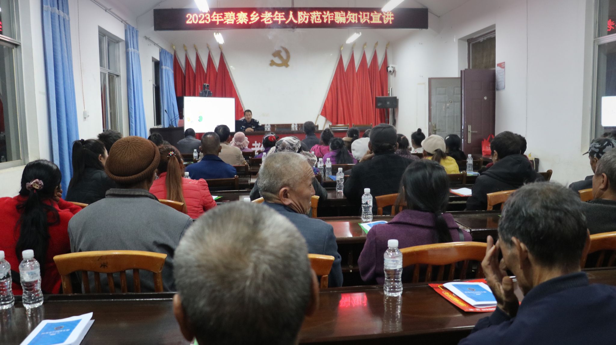为预防和减少诈骗案件的发生,进一步提高辖区内老年人防范诈骗意识,守护好老年群体的“钱袋子”,2023年12月22日,碧寨乡宣传办联合碧寨派出所、碧寨司法所到各村(社区)开展老年人防范诈骗宣传活动。