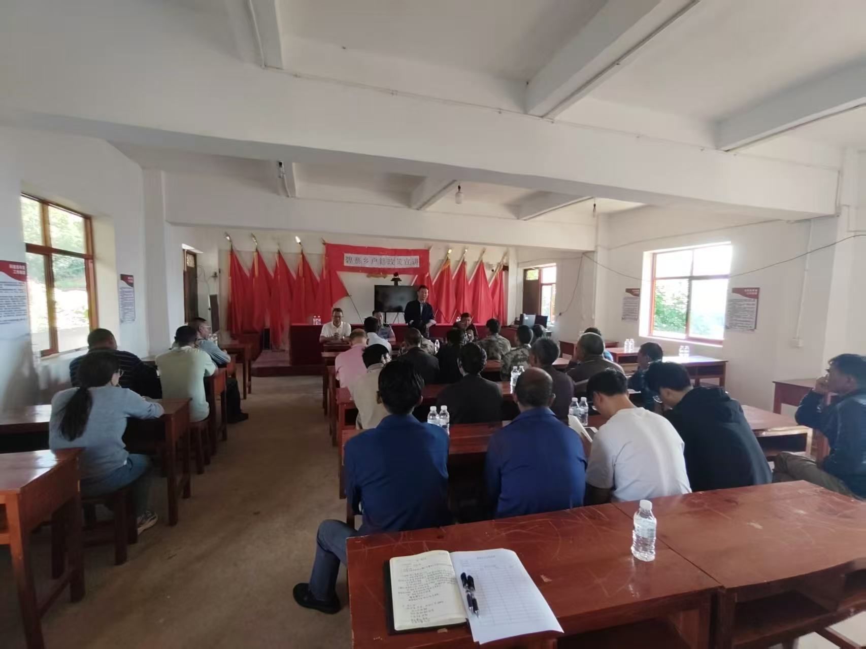 碧寨派出所指导员就缅甸人员管理问题作讲解,并对社会维稳工作提要求,增强群众法律意识,运用法律维护自身合法权益避免遭受损失。