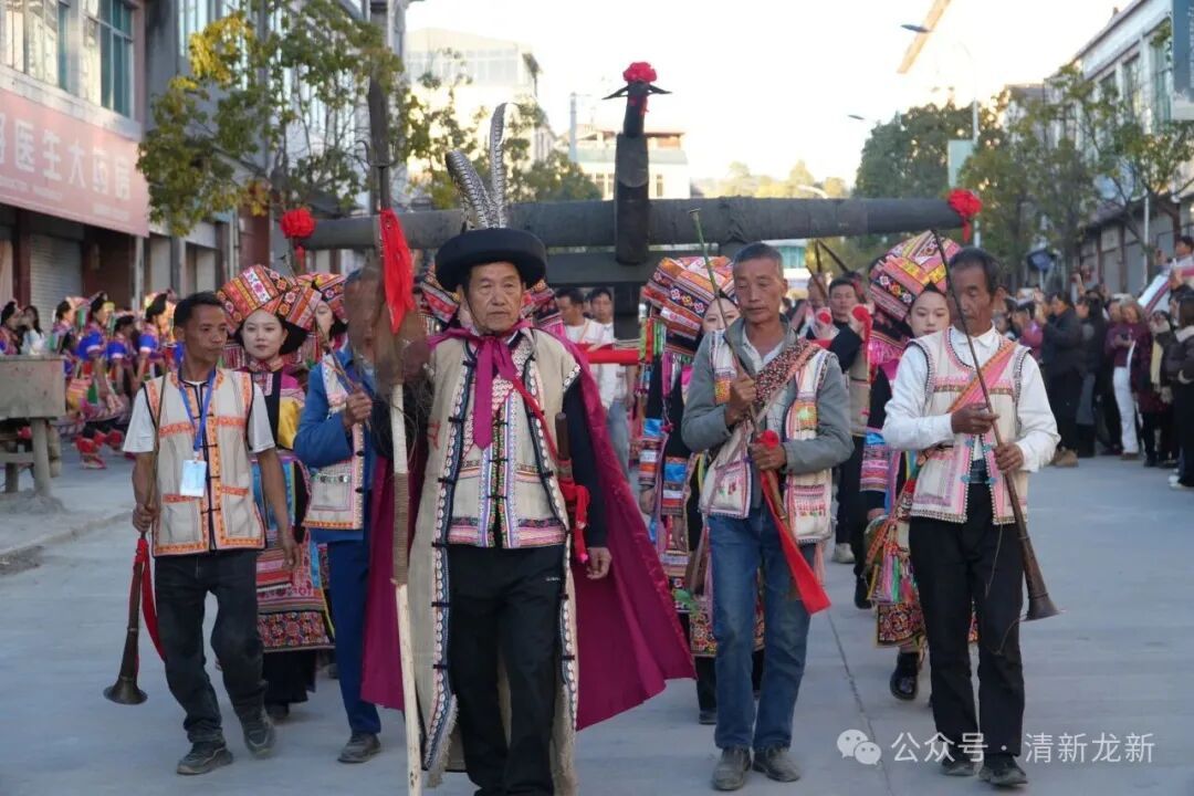 迎着黄昏,号角声响彻龙新。勇士们肩抬巨弩从远处走来,向我们展示着傈僳族坚韧、勇敢、精准的民族性格和那不灭的“勇士精神”。