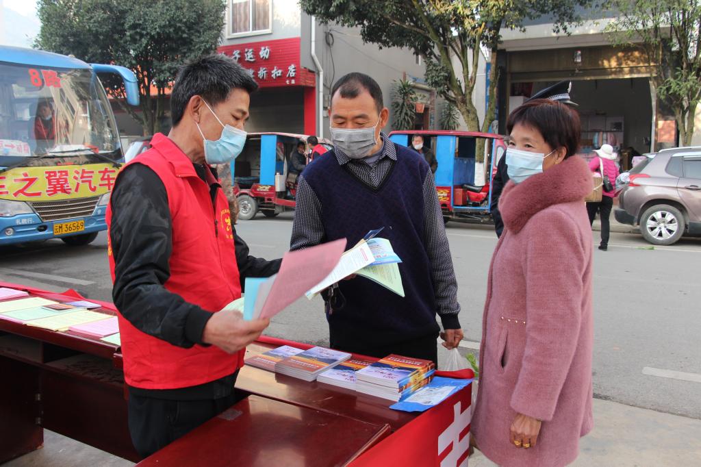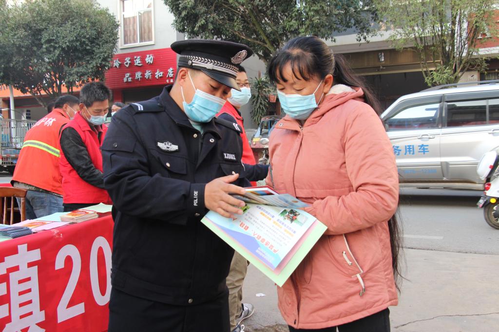 活动现场,综治、镇武装部、农林水、安监、国土、政法等部门通过悬挂横幅、发放宣传资料、现场咨询等方式,向广大群众宣传疫情防控、安全生产、爱国卫生“七个专项行动”、法律知识、网络诈骗、森林防火、道路交通安全、农村乱占耕地、综治平安建设、守护湿地等相关规定和知识,提倡疫情防控期间“红事缓办、白事简办”,倡导健康文明新风尚,改进就餐习惯,使用公筷公勺,做到“小餐桌”带动“大文明”,呼吁广大人民群众非必要不出行,持续深入开展爱国卫生“七个专项行动”。