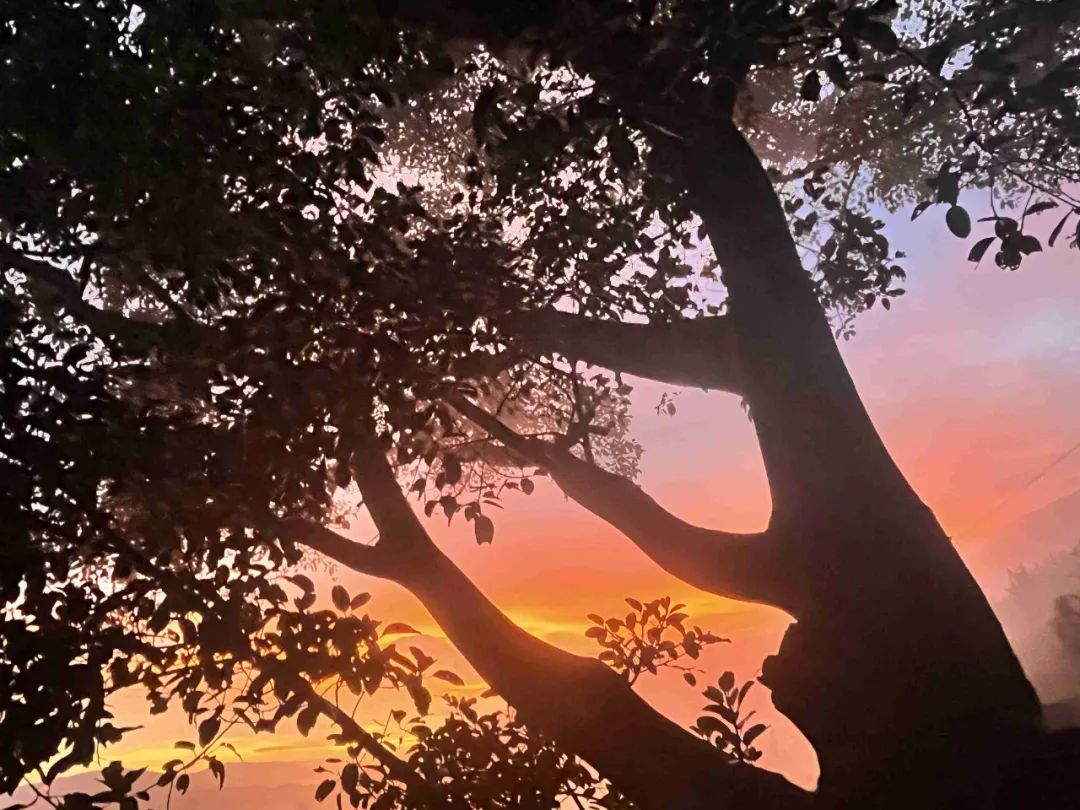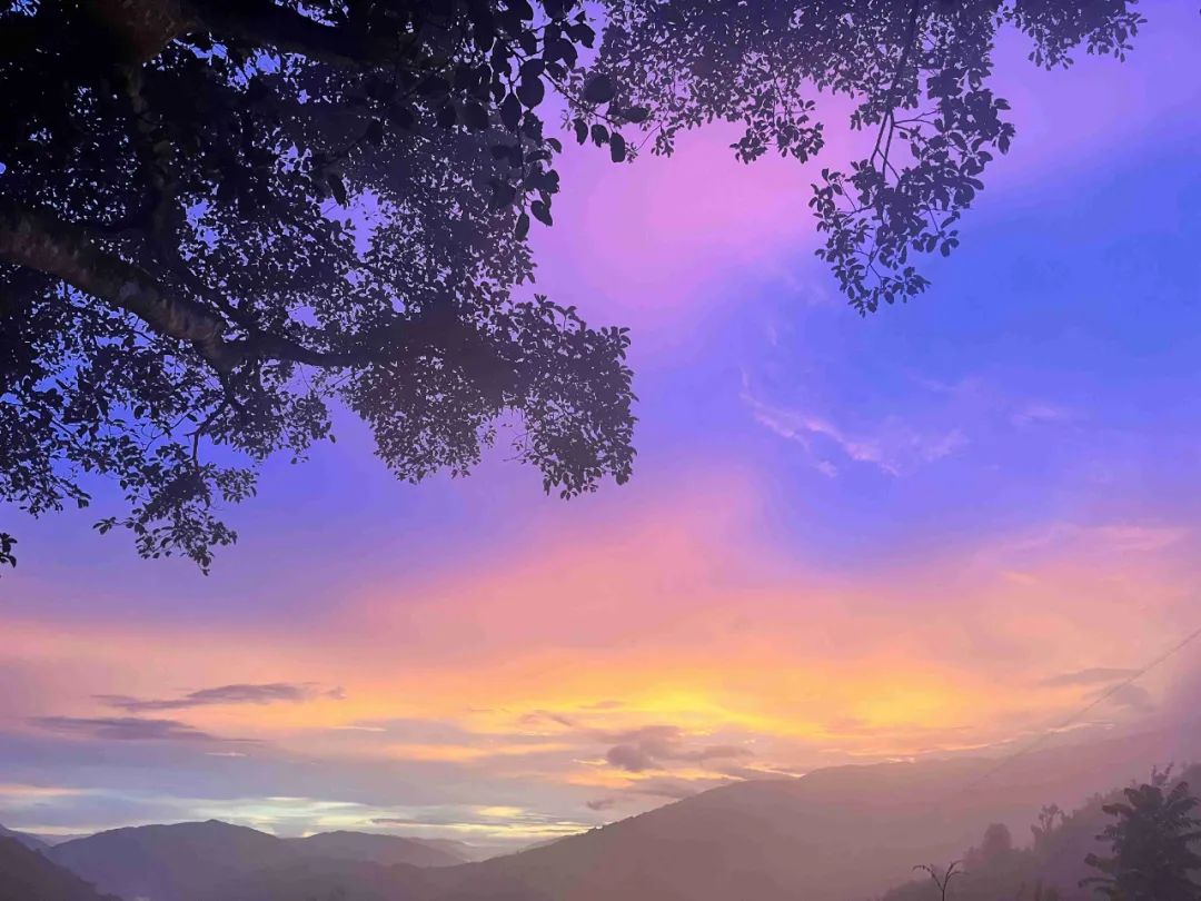 白——山川村寨间的云雾。那漫漫云海笼罩整个小镇,云雾在山谷缓缓传行,一阵雨后,云朵在山间中舞动,气势磅礴,线条优美,依山顺势,连绵向上,层层叠叠。山顶上的白色棉花帽、山腰间的白色玉腰带、山间散布的村寨披着的虚虚实实的白色薄纱,一幅幅不用蘸墨、不用着色且美丽而有底蕴的写意山水画,就此浮现,这一抹“云雾白”是我独有的浪漫。