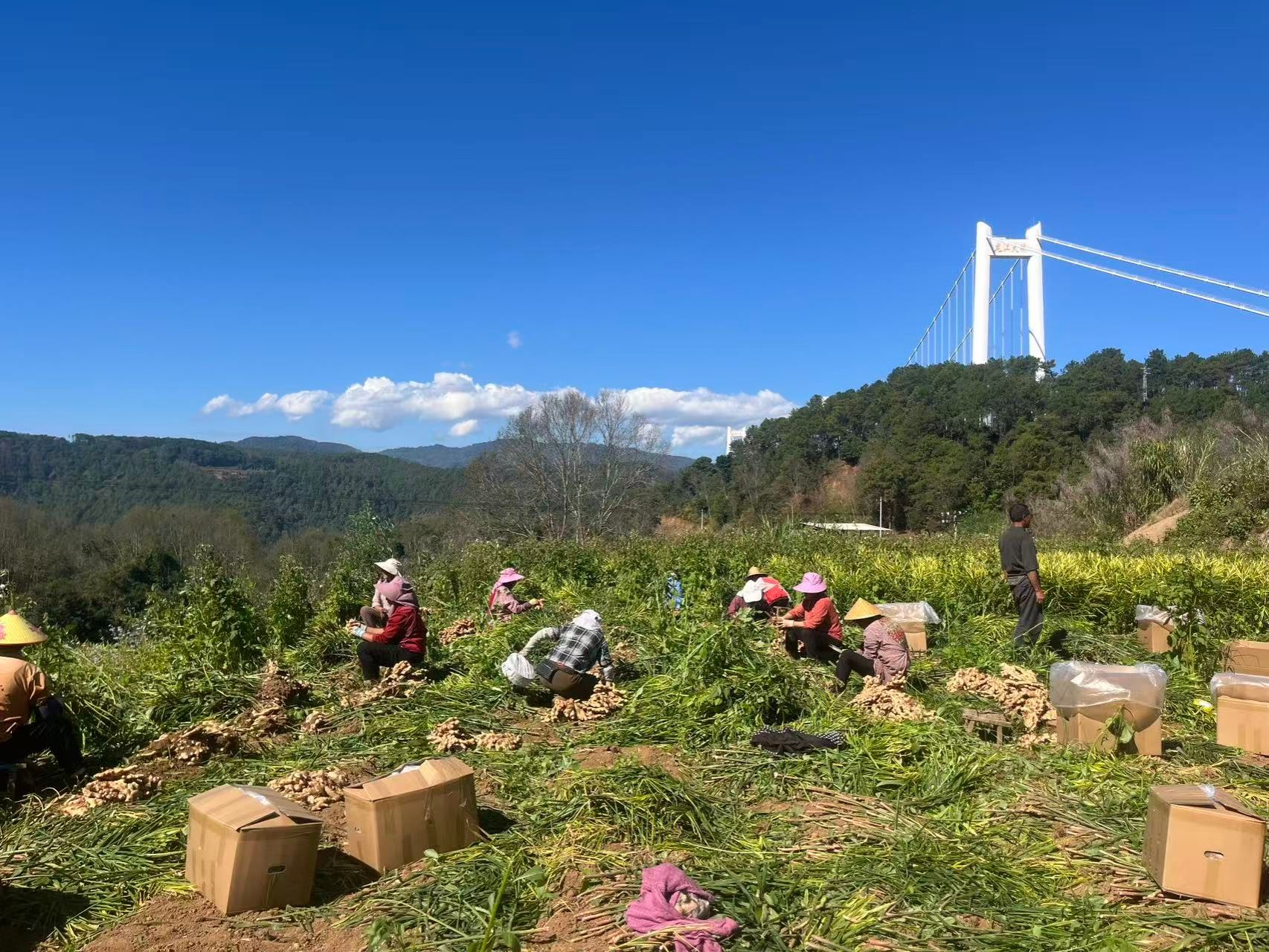 “今年雨水调匀,姜苗根系茁壮,每亩产量至少可达6.5吨。”杨新达抹去额头的汗珠,指着远处层层叠叠的梯田介绍道。邦焕村农户依托丰富的山地资源,积极发展高附加值的生姜、紫薯等特色种植120余亩。他们通过绿肥轮作改善土壤生态,运用物理防虫技术确保产品安全,并结合测土配方施肥实现精准营养管理。科技创新贯穿于种植、管理和收获的各个环节,使原本“靠天吃饭”的粗放生产模式转变为“知天而作”的精细农业,产品品质和市场竞争力因此显著提升。