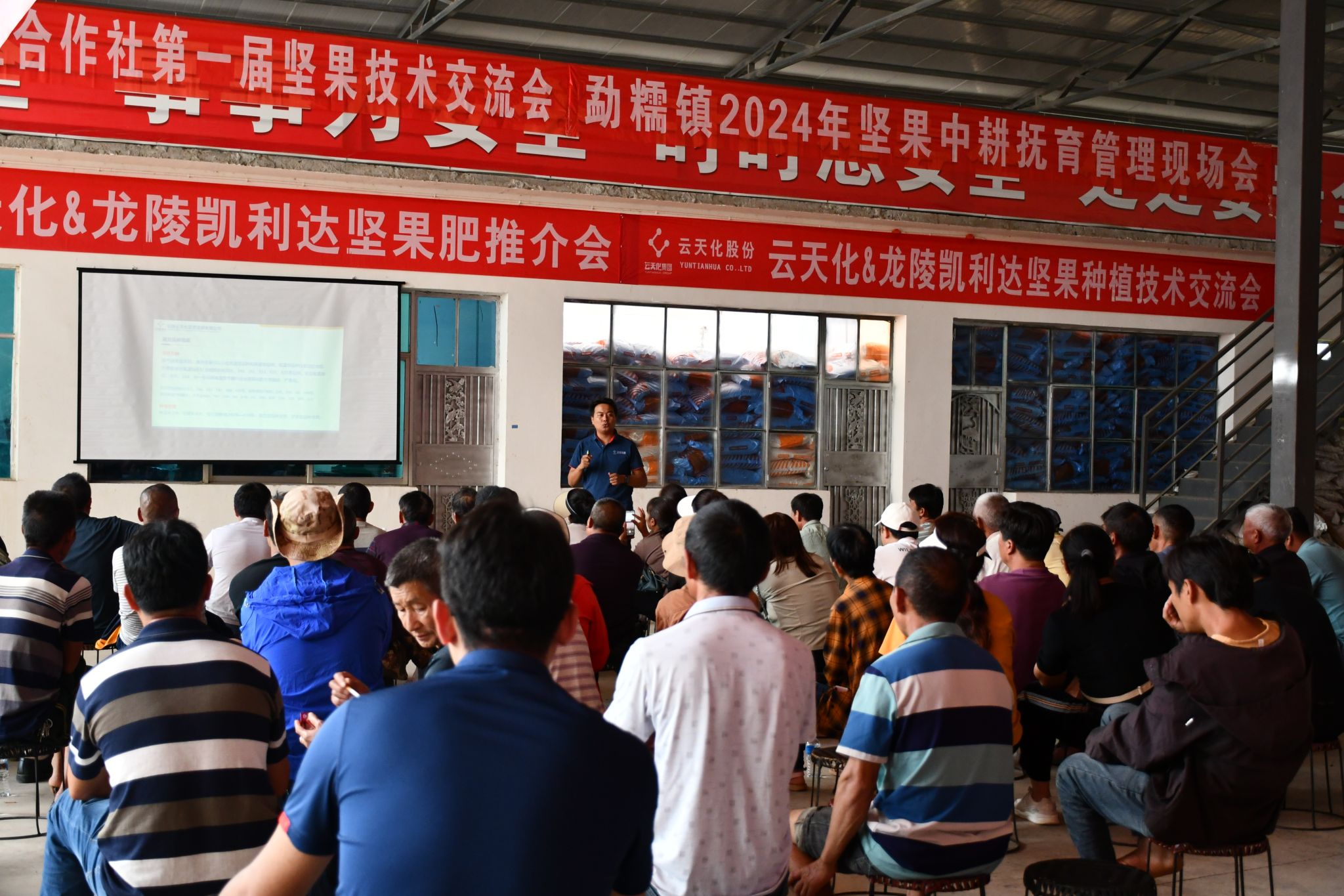 此次培训采用了“室内理论教学+基地实操演示”的复合教学模式,对坚果的全方位、深层次管护技能进行了系统而详尽的传授。在培训现场,技术人员不仅理论讲解深入浅出,更上手示范操作,围绕施肥技巧、修剪策略、高效嫁接方法及无人机植保等坚果提质增效的核心技术,对参训种植户进行了全面而细致的知识普及。同时,面对种植户们提出的各类疑问,技术人员耐心解答,提供了科学严谨且极具实用性的技术指导与实践经验分享,营造了浓厚的学习氛围。