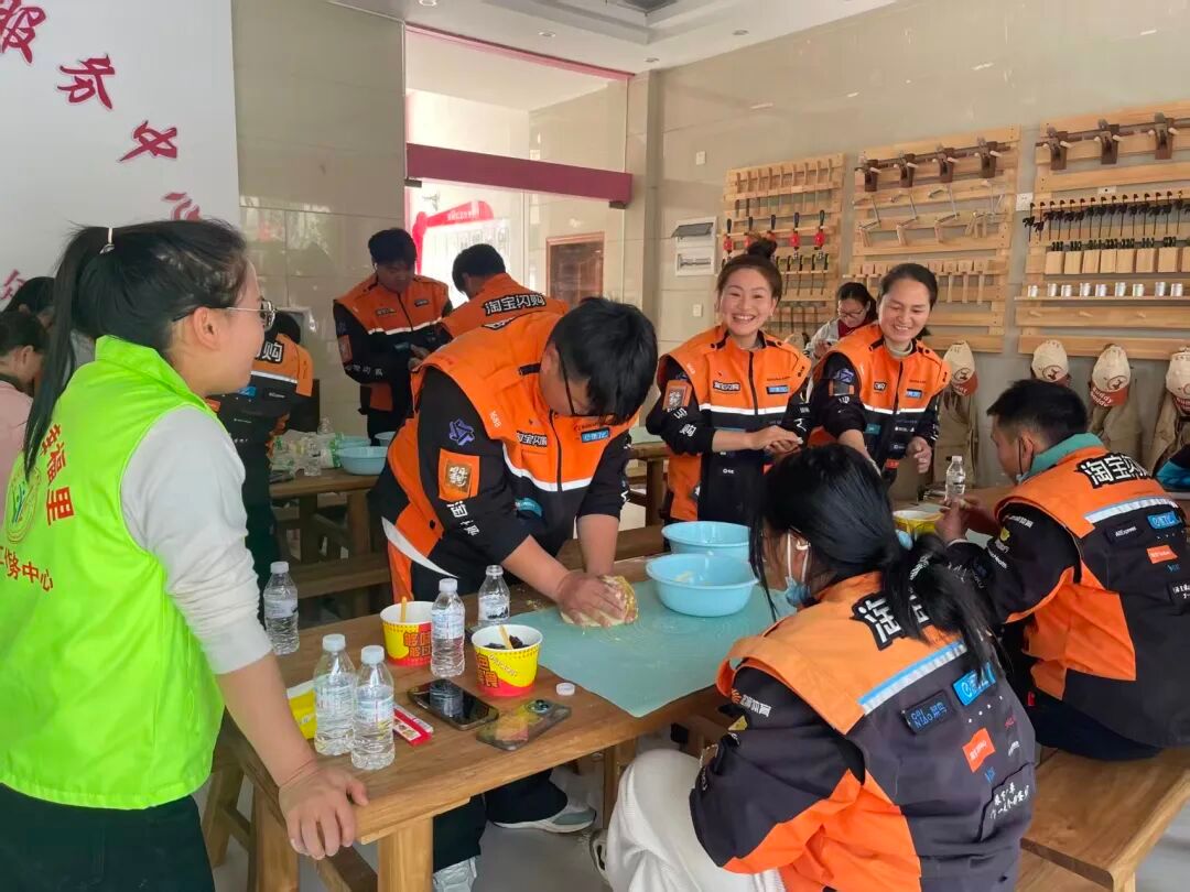 游戏过后,活动进入温情的“巧手包汤圆”环节。在志愿者的耐心指导下,平日里握车把、拎餐盒的双手,认真地揉起了面团。