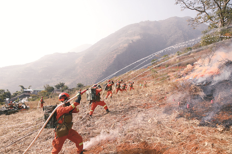 近期,保山市森林消防支队以隆阳区潞江镇张贡村高黎贡山东麓发生较大森林火灾为背景,组织驻保队伍开展实装、实兵、实战灭火救援行动演练,全面检验队伍在实战环境中的体能、技能、智能以及指挥协同等方面的能力,提升队伍打赢制胜本领,为人民过上安全祥和的新春佳节“保驾护航”。