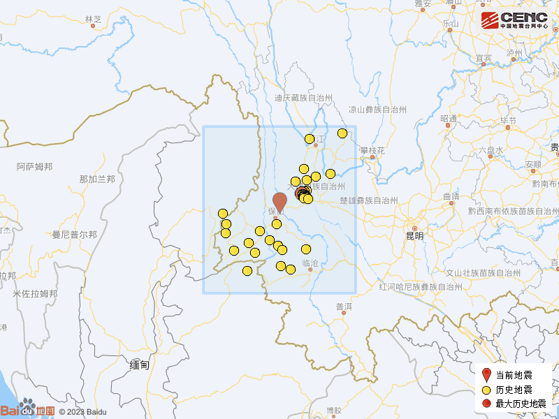 根据中国地震台网速报目录震中周边200公里内近5年来发生3级以上地震共123次最大地震是2021年5月21日在云南大理州漾濞县发生的6.4级地震(距离本次震中69公里)