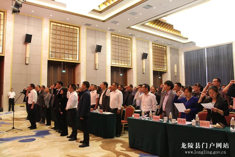 县委书记段忠华领誓,与会人员共同宣誓,向全县人民作出了郑重承诺,“坚决落实上级决策部署,勇担脱贫之责,勇挑攻坚重担,严把政策标准,严守纪律要求,用心用情用力,精准高效施策,绝不让一个贫困群众掉队,坚决打赢脱贫攻坚战。”