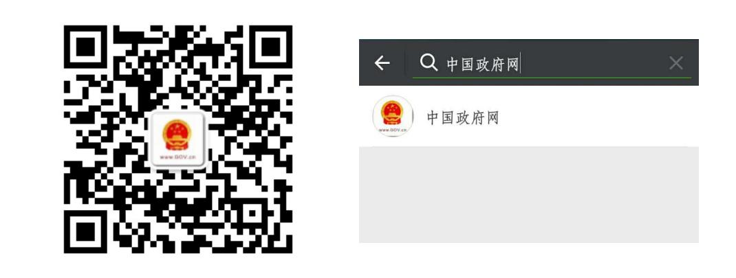 扫描下方二维码,关注中国政府网微信公众号,也可在微信公众号中搜索“中国政府网”或“zhengfu”。