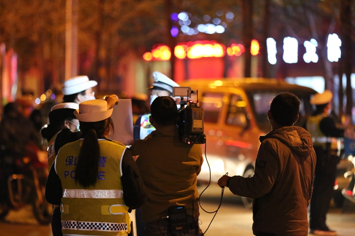 为提升广大交通参与者的安全出行意识,1月28日晚,龙陵县交警大队在城区开展查处酒驾醉驾等严重交通违法行为专项整治行动。此次整治行动通过云南卫视七彩云、“保山交通警察”微博帐号以及龙陵融媒体官方抖音号进行同步直播,吸引了20万多名网友在线观看。