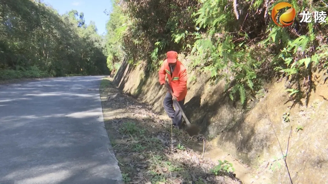 46岁的龙江乡勐外坝村村民廖永谷时常穿着橘红色的护路服,带着锄头、铲子等工具,沿着乡村公路忙碌,作为龙畅公路养护专业合作社专职护路员,他管护的这条路宽4.5米,全长6公里。他说,“我们主要就是搞沟道清洁,路面整洁,我们为了保护家乡的道路,要给它清洁,出进人员要看到美丽风光,我们的路尽量去养护好,我们也尽量做好。”