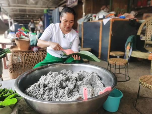 民俗味。勐糯镇大寨社区是以傣族聚居的传统村落,历史悠久,保留着原汁原味的傣族文化、宗教习俗及特色建筑,文化积淀深厚,是“中国少数民族特色村寨”。沿着青石板铺成的傣韵古道,一路体验独特的傣族文化。充满傣韵风情的泼水广场、庄严神秘的寨心楼、舒适宜人的休闲长廊、自然古朴的傣泐民宿酒店,居住于此便有推门见山,开窗即景的云淡风轻。菩提树下,许愿井、圣水池,舀一瓢生命的源泉洗涤一身尘埃,祈一世的平安吉祥。走走停停,静享悠然的乡村慢时光。傣族文化特色街里,傣味农家乐的酸甜苦辣咸、傣家传统草灰粽的香糯……让人垂涎欲滴。竹林下,广场上,婀娜多姿的傣族女子伴着优美的旋律翩然起舞。店铺里,勤劳的傣族妇女巧手绣织锦,手拿梭,脚踩板,一梭一缕,在机杼声声中织出傣族人家幸福好生活。