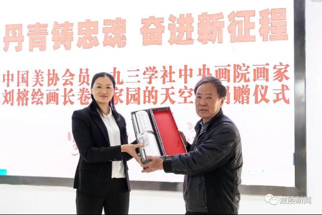 3月15日,中国美协会员、九三学社中央画院画家刘榕向龙陵县捐赠绘画长卷《家园的天空》。