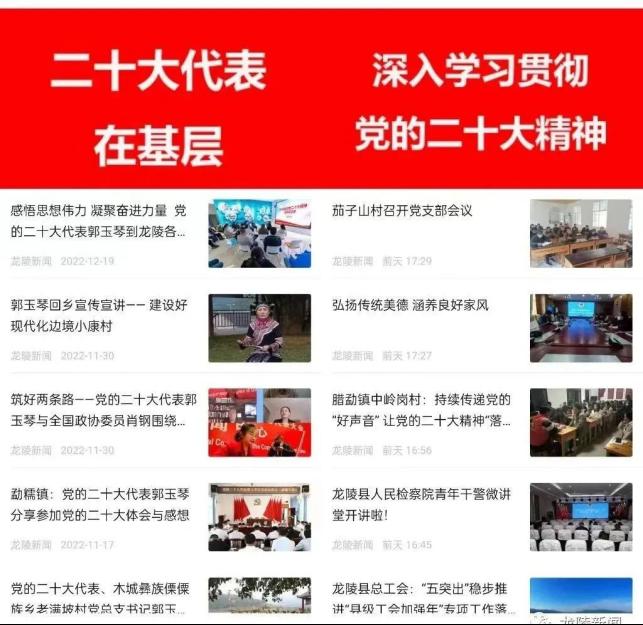 从各级宣讲会场到农家小院,到田间地头,到火塘边……一场场别开生面的宣讲让党的创新理论入心又入脑,成为激发龙陵干群不懈奋斗的强大精神力量。开设党的二十大精神主题宣传宣讲专栏,制作《龙陵这十年》《寄语党的二十大》《作风面对面》《“习语金句”我来讲》《强国复兴有我》等专题,持续做好“学习强国”学习平台的使用、服务、管理工作,打造云端课堂,推动理论武装由指尖到心间。