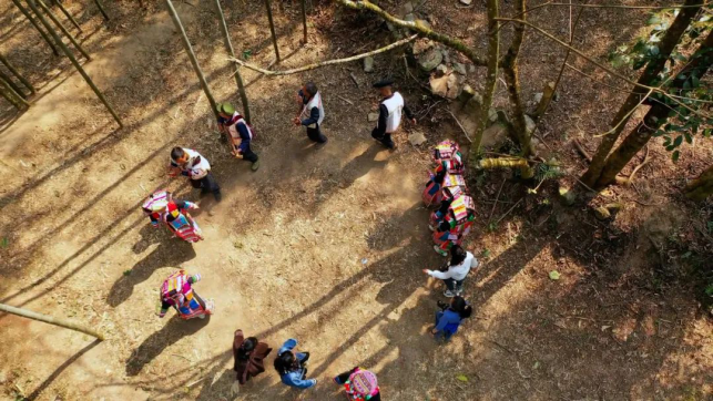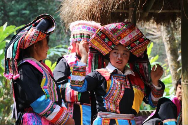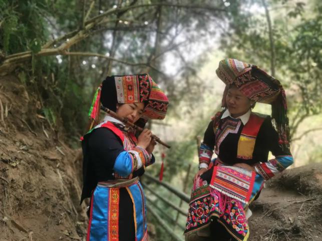 闲谈之中,傈僳族大哥不禁吹起随身携带的竹笙。“来和我们一起打歌玩吧!”伴着欢快的箫声、笛声、三弦声,傈僳姑娘唱起原汁原味的歌调,在竹林深处、山谷溪边的空地上,大家一起尽情地载歌载舞,身着七彩蝶衣的傈僳族女子宛若飞舞的林间仙子,与自然山水融为一体,歌声、笑声如天籁之音回响在山谷。