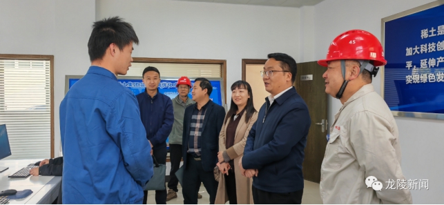 在江西定南大华新材料资源有限公司,考察团一行走进冶炼分离车间和技术创新中心,认真察看稀土冶炼分离工艺流程,详细询问稀土分离材料运用、稀土全产业链发展现状等情况。在中国稀土集团,考察团与企业有关负责人座谈交流,详细了解企业现状、发展方向、市场规划等情况。