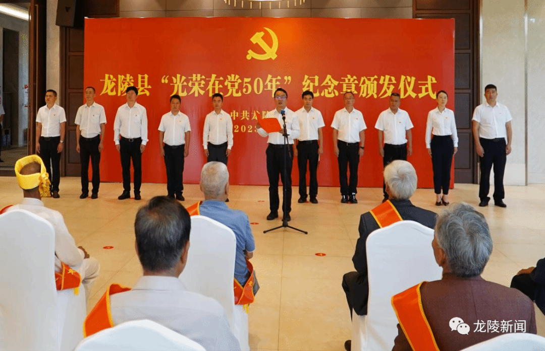 百年征程浩荡,五十载初心如磐。6月28日上午,龙陵县举行“光荣在党50年”纪念章颁发仪式。县委书记牛永东出席仪式并致辞,县委副书记、县长李永标主持仪式,马从晓、李永、赵兴灿等县级领导参加了仪式。