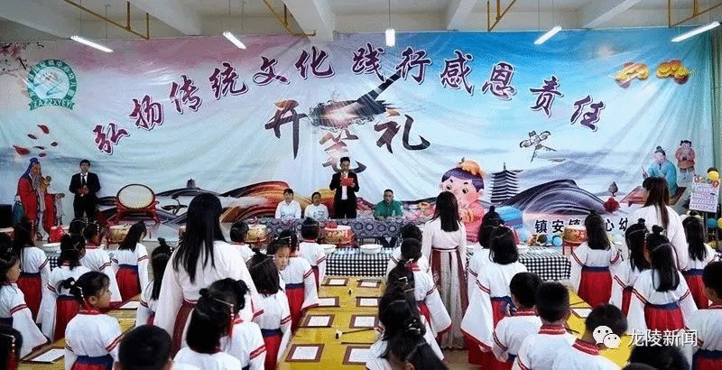 镇安镇中心幼儿园园长李素艳说:“‘开笔礼’是我国古代就有的一种启蒙学习仪式。今天我们幼儿园举行第一届‘开笔礼’毕业典礼,目的就是想通过这种庄重的仪式,让将要进入小学的小朋友真正感受到入学是人生中的一件大事,是开始学习,是走向成才的起点,以此激励孩子们珍惜读书机会、勤奋学习。”