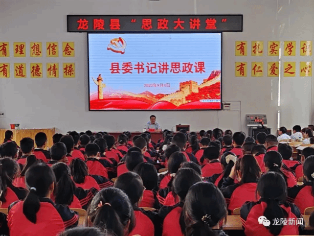 9月4日,县委书记牛永东到龙一中讲授思政课,县委常委、县委宣传部部长何梦吟及县教育体育局班子成员、龙一中部分师生代表到场聆听。
