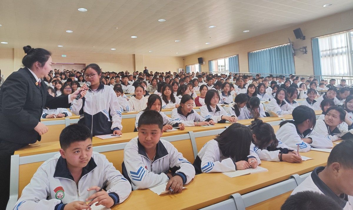 “我想成为一名工程师,我想成为一名军人,长大后我也想成为一名优秀的检察官……”在活动现场,法治副校长另辟新径,以“你想成为一个什么样的人?”作为普法切入点,通过讲述自己的求学、就业之路,引导学生们积极思考自己的梦想是什么,自己应该为实现梦想而做哪些准备等问题。随后将努力学习、遵纪守法的意识贯穿在与学生们的互动交流中,以“小互动”促成“大成效”的方式把一颗颗具有“自发性”的法治种子播撒在未成年人的心中,切实提升了未成年人的法治素养。