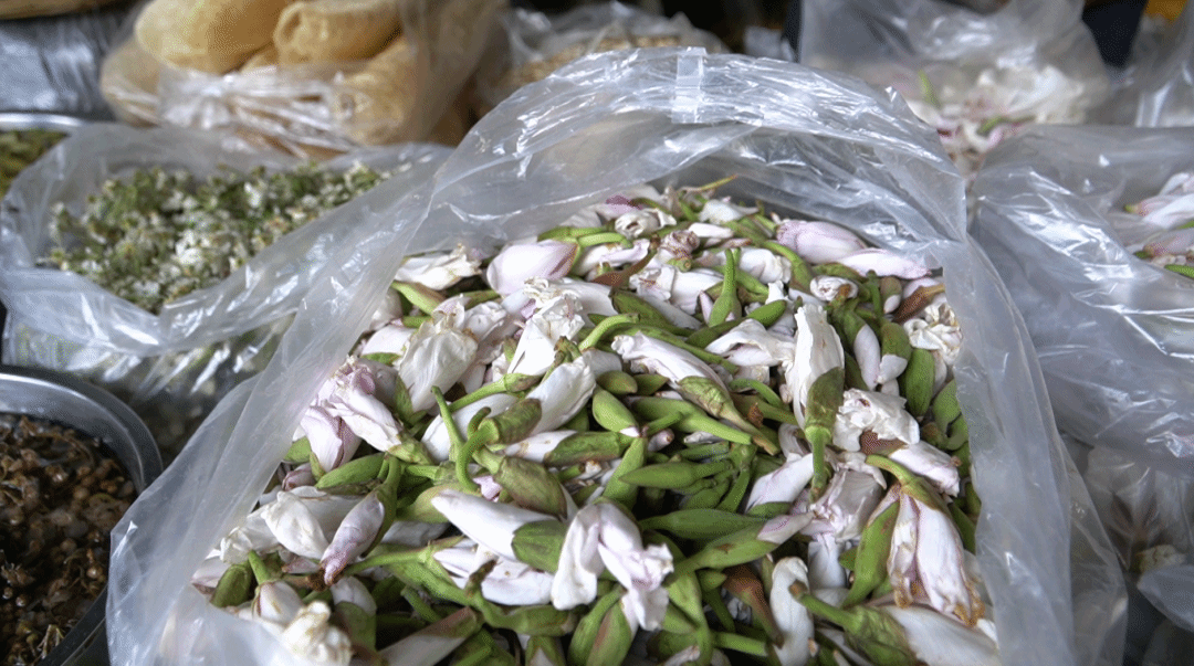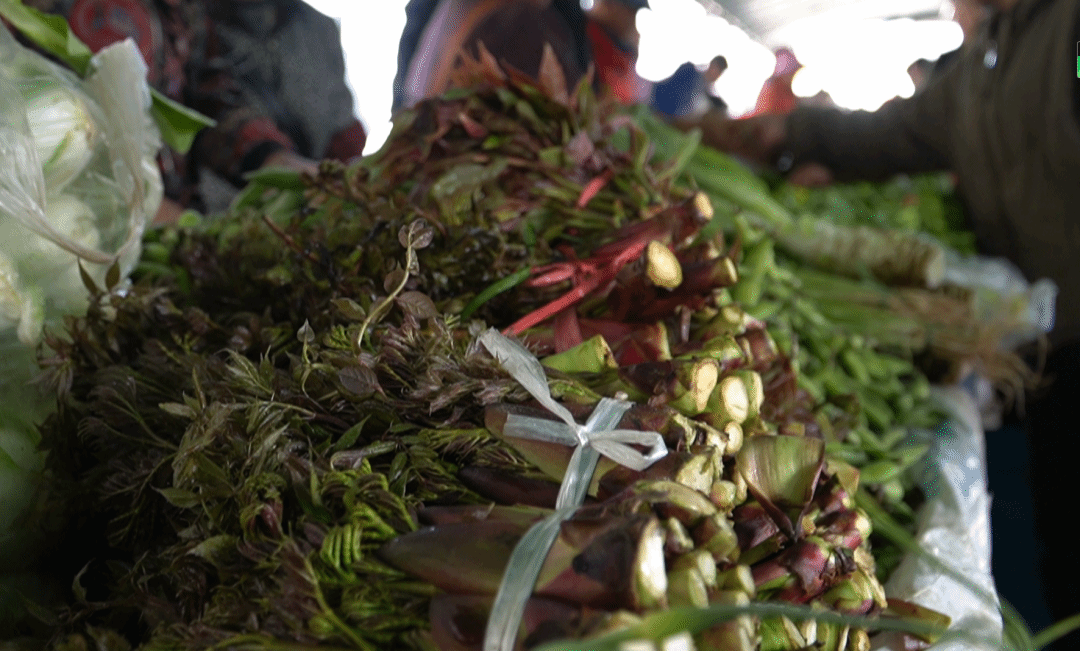另一位张女士也介绍道:“我今天买了点樁头苞,是18块钱一斤,我买了两斤,回去准备用蚕豆米、酸腌菜、小米辣一起煮了吃,不仅味道独特,而且有败火的作用,买回去一家人吃了以后,对身体很好。”