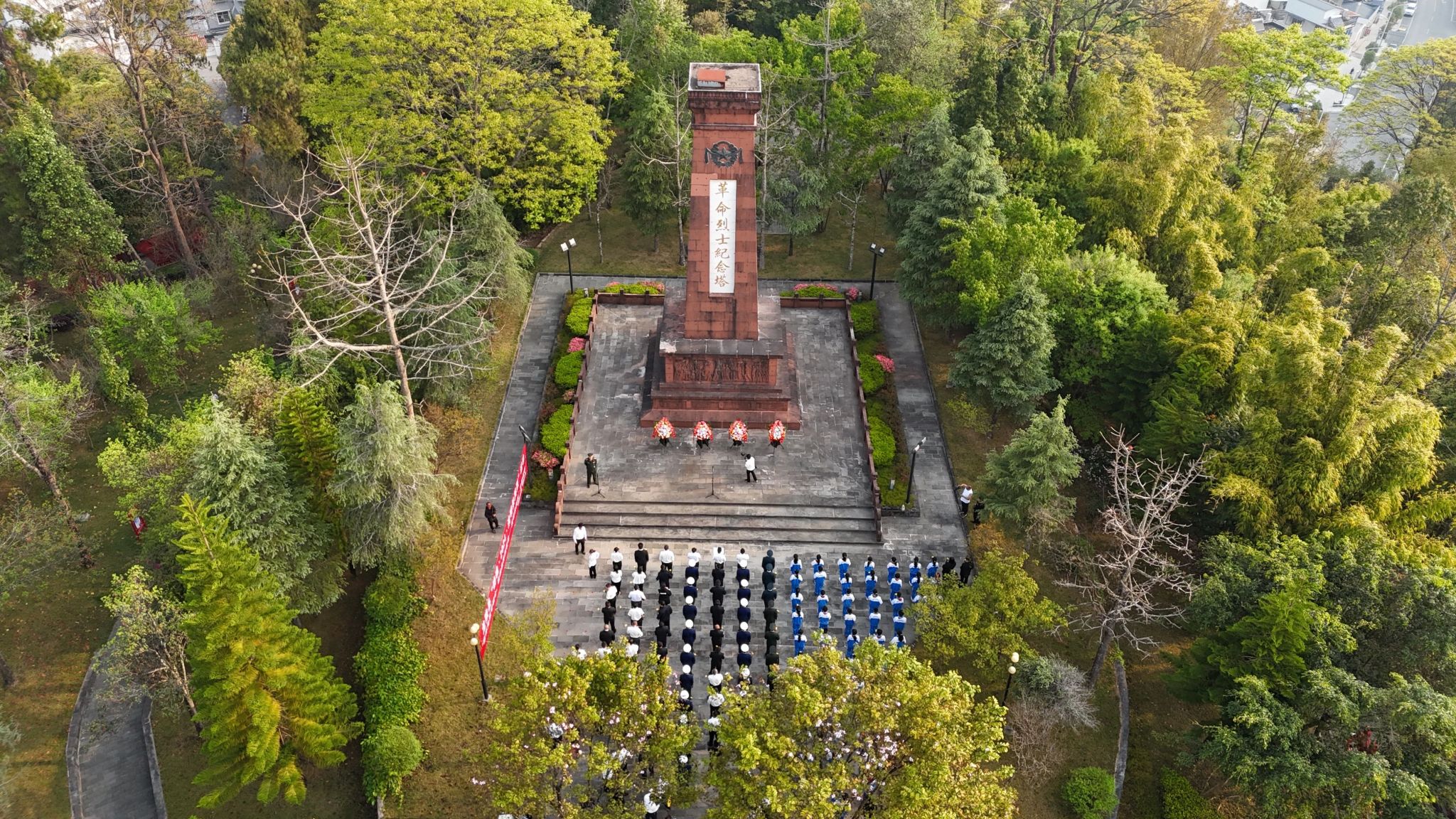 少先队员高声献唱《中国少年先锋队队歌》,缅怀革命先烈不朽功勋,表达当好接班人的远大志向。哀乐声中,参加活动的县级领导缓步上前整理挽联缎带。全场人员共同向革命烈士纪念塔三鞠躬,并有序向革命先烈敬献鲜花,瞻仰革命烈士纪念塔。
