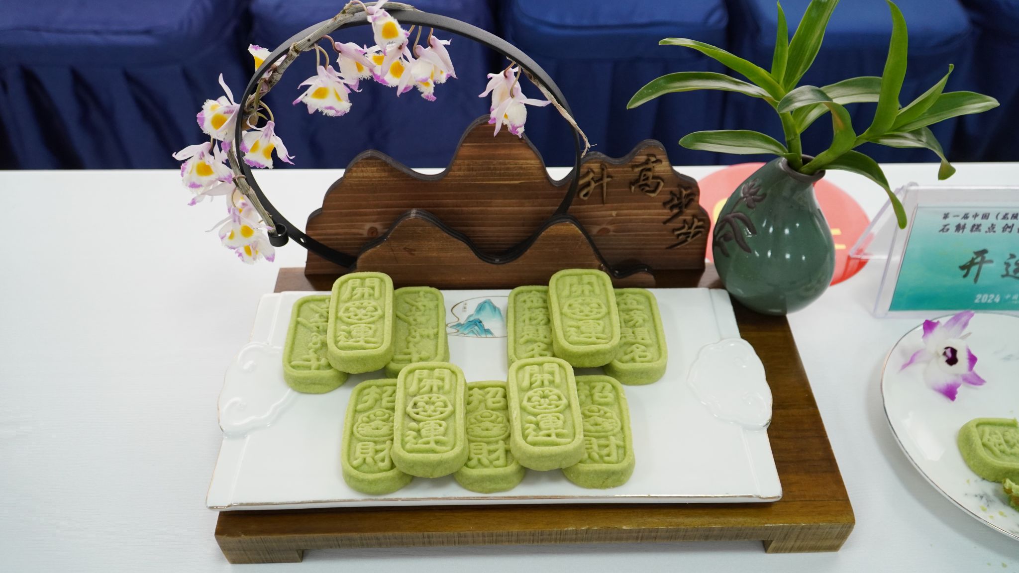 在中国石斛花卉交易展示中心内,仙草酥、开运酥、石斛花篮酥、石斛鲜花饼、铁皮石斛和果子、龙斛食韵、石斛平安果、斛上添花、石斛原浆慕斯蛋糕、石斛瑞士卷、石斛布丁可颂、石斛坚果曲奇等一道道运用石斛原材料制作出来的匠心独特、造型精美的糕点,引来了众多游客驻足观赏。
