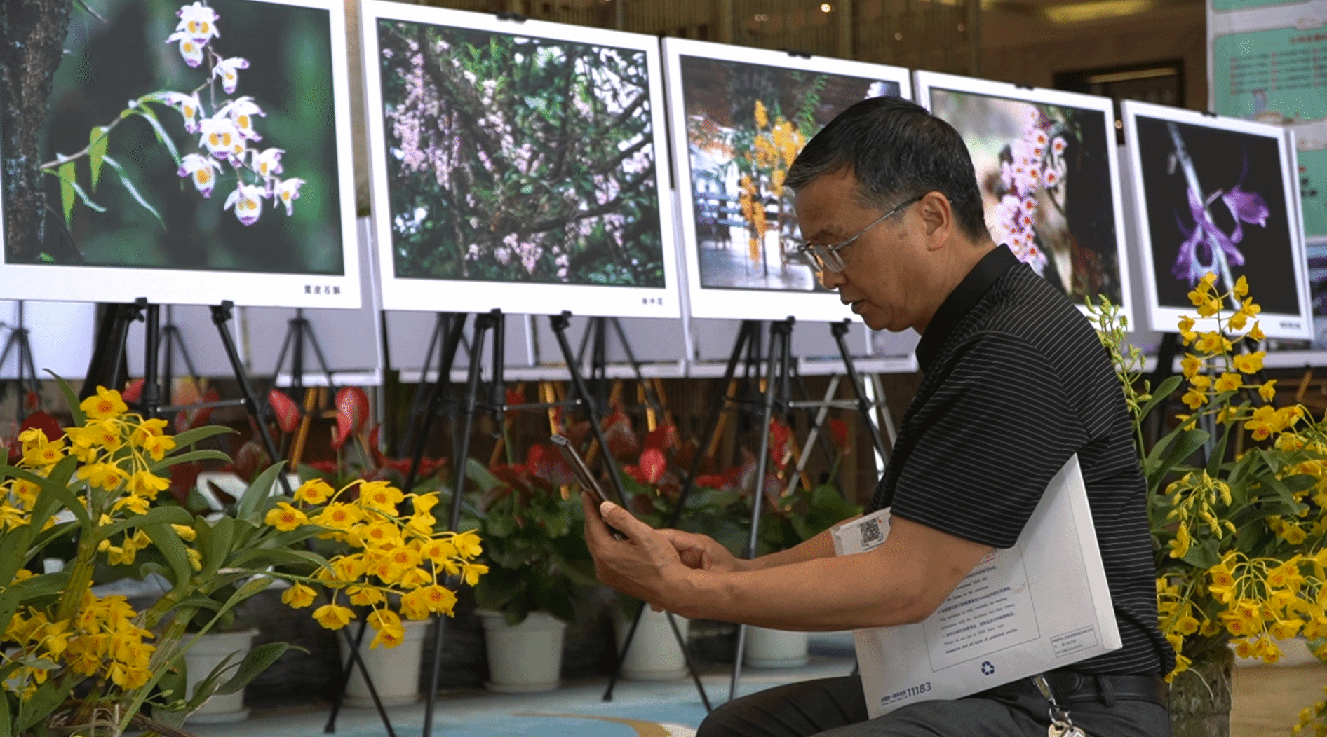 一等奖获得者蔡庆彪拍摄的关于龙陵石斛产业发展的组照作品吸引了游客驻足欣赏。他高兴地说:“能参加此次比赛,我非常的开心。因为有了这个平台,让我们广大摄影爱好者能够一起交流、共同进步,非常有意义。”