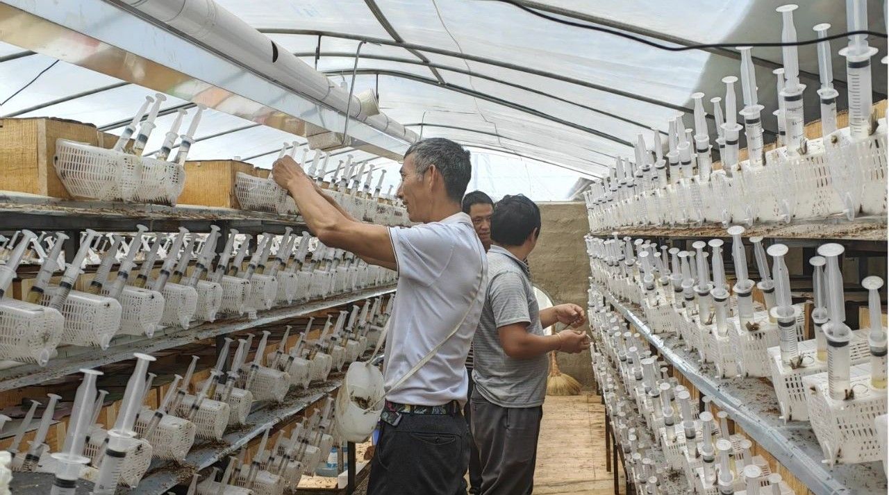在不断熟化胡蜂养殖技术的基础上,引进高层次人才,科技助力产业发展。2019年建立“张红城专家工作站”。筛选出适宜于胡蜂蛹生产、胡蜂毒生产及适宜于林区、设施农业、经济林害虫生物防治的胡蜂种类,形成了胡蜂繁育养殖、蜂蛹产品加工和成分分析、蜂毒提取和产品加工产业链。2023年建立“徐书法专家工作站”,重点将围绕胡蜂种质资源、生物防治、营养饲料等方向进行探索和研究,并与公司共同解决胡蜂养殖过程烂子病问题。