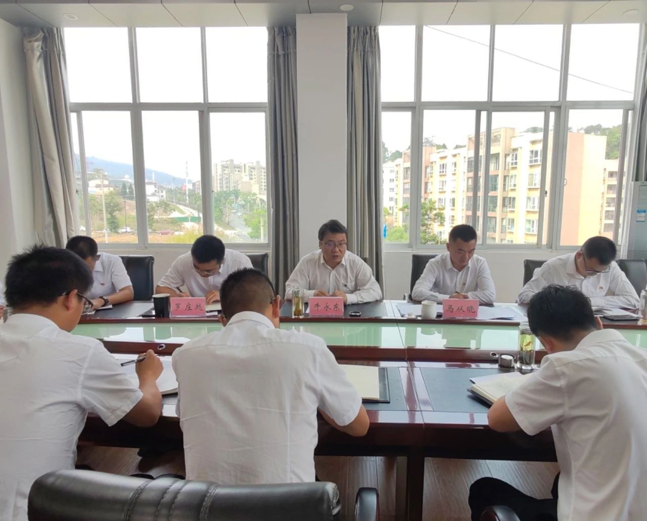牛永东指出,县委办公室是县委的综合办事机构,联系各方面最广泛,保障县委工作最关键,居于承上启下、协调左右的中枢位置,是全县各级各部门的“火车头”。县委办公室要深入学习贯彻习近平总书记重要讲话精神,以“五个坚持”为根本遵循,不断提升“三办”水平,推动“三服务”工作提质增效,发挥好标杆引领作用,全力打造一流的模范机关。