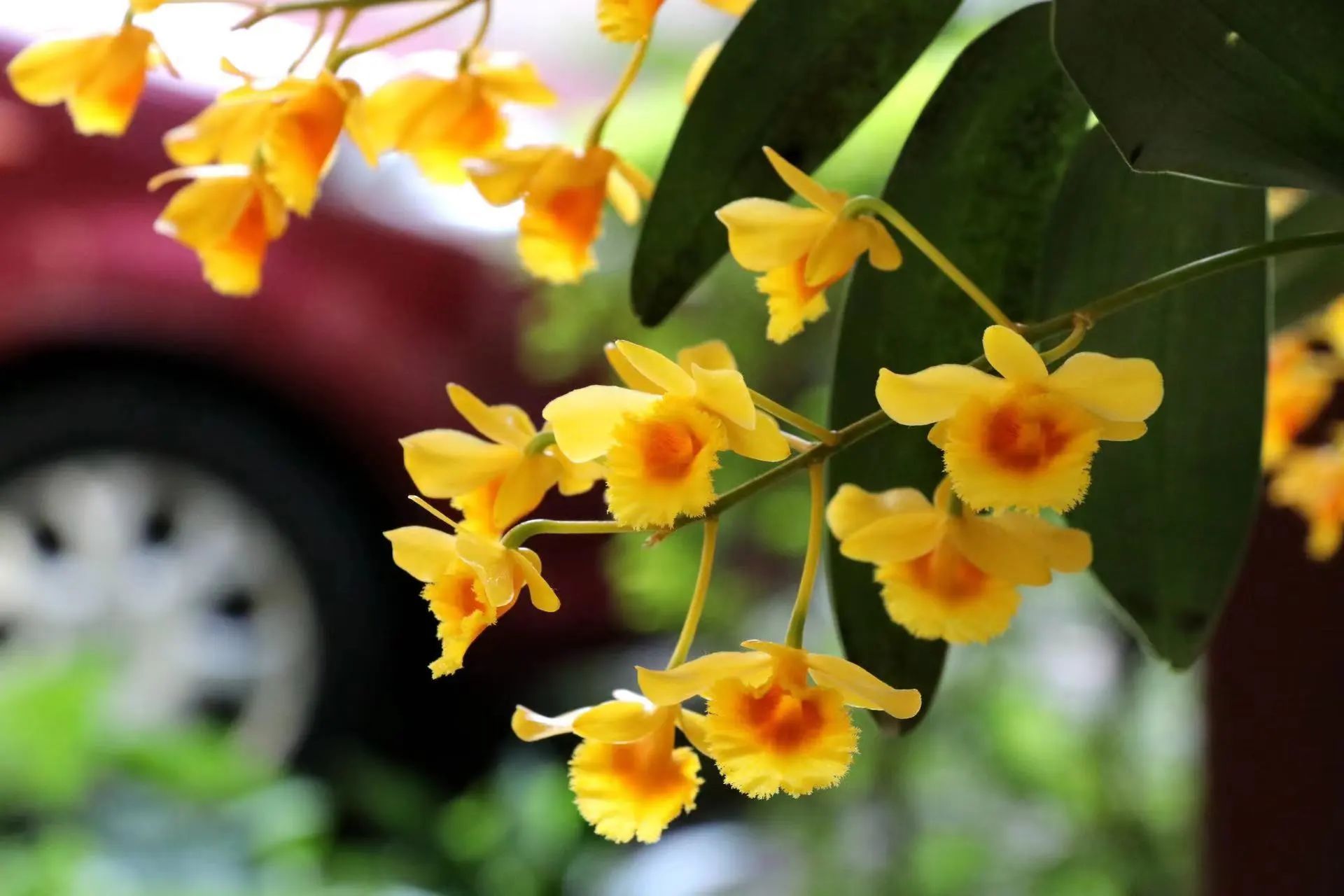 龙山路的紫皮石斛、花桥河畔的鼓槌石斛、汇源路的黑喉石斛、龙华路的球花石斛、兴农路的肿节石斛……眼下,正是石斛花盛开时节。走进边陲小镇龙陵城,只见各种各样的石斛花竞相绽放在绿油油的云南樟下,为绿美县城增彩添色。