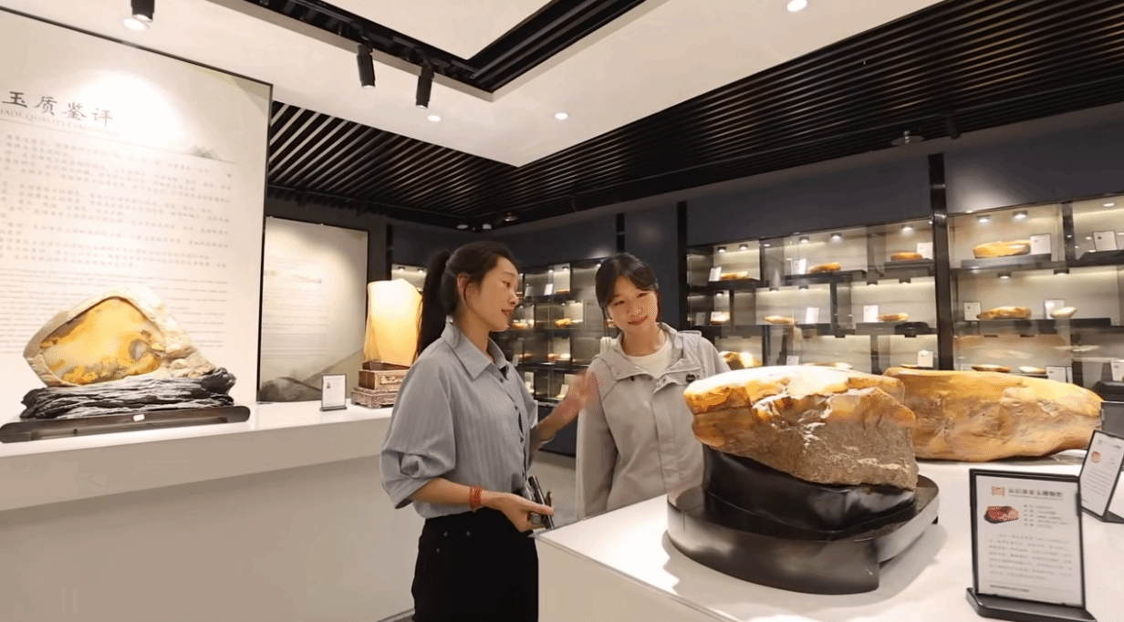 “游滇西雨屏,赏中华美玉。”在运启黄龙玉博物馆,主播带大家在黄龙玉科普展区了解了龙玉传说和黄龙玉的发现、发展及腾飞;参观了精品原石展厅里各种不同产生环境与各种品质形态的黄龙玉原石,籽料区、山流水料区、山料区、水草花料区,充分展现了自然界的鬼斧神工;在精品玉雕展厅,欣赏了东方哲思、山水逸致、文心雅韵、赏玉寻古、名玉荟萃……“运启黄龙玉博物馆馆藏品3000多件,是目前国内规模最大、品类最全、收藏价值最高的黄龙玉博物馆。欢迎大家来现场参观欣赏龙陵黄龙玉文化!”主播向观众发出了诚挚地邀请。