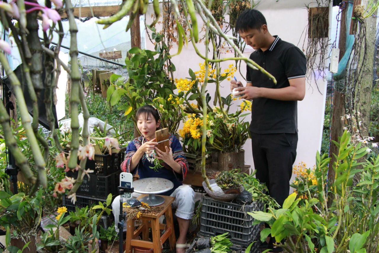 眼下,正值石斛花开的季节,走进龙陵县平达乡石斛花直播基地,直播带货主播们正在通过网络推荐当地的农特产品——石斛花卉。“我们想通过网络直播的方式,把石斛花卉销售到全国各地,在带动周边群众增收致富的同时,也进一步带动我们的石斛产业发展。”电商从业者蒋德凡介绍道。