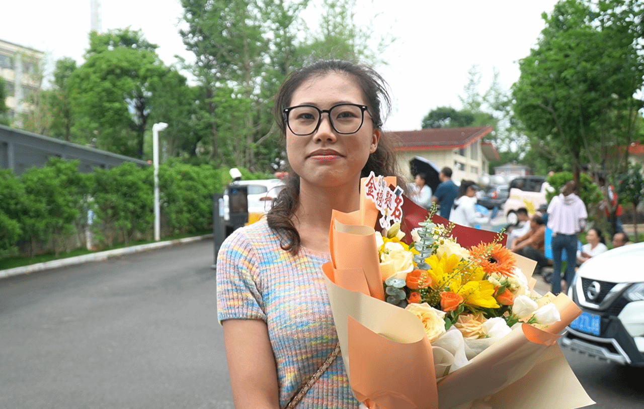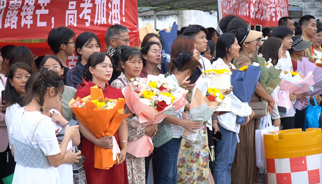 “祝姐姐轻装策马青云路,人生从此遇长风,加油!”在父母的陪伴下,一同迎接高考的姐姐时,弟弟妹妹说出了心中的祝福。