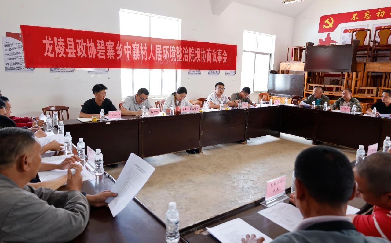 8月15日,龙陵县政协组织县乡有关部门领导、协商议事会成员、群众代表在碧寨乡中寨村匡家寨组以“共建共享,携手打造宜居美好家园”为主题开展院坝协商议事会议。为人居环境整治提升、净化绿化美化村庄、共建共享宜居宜业和美乡村凝聚共识、建言献策,不断提升群众获得感、幸福感。