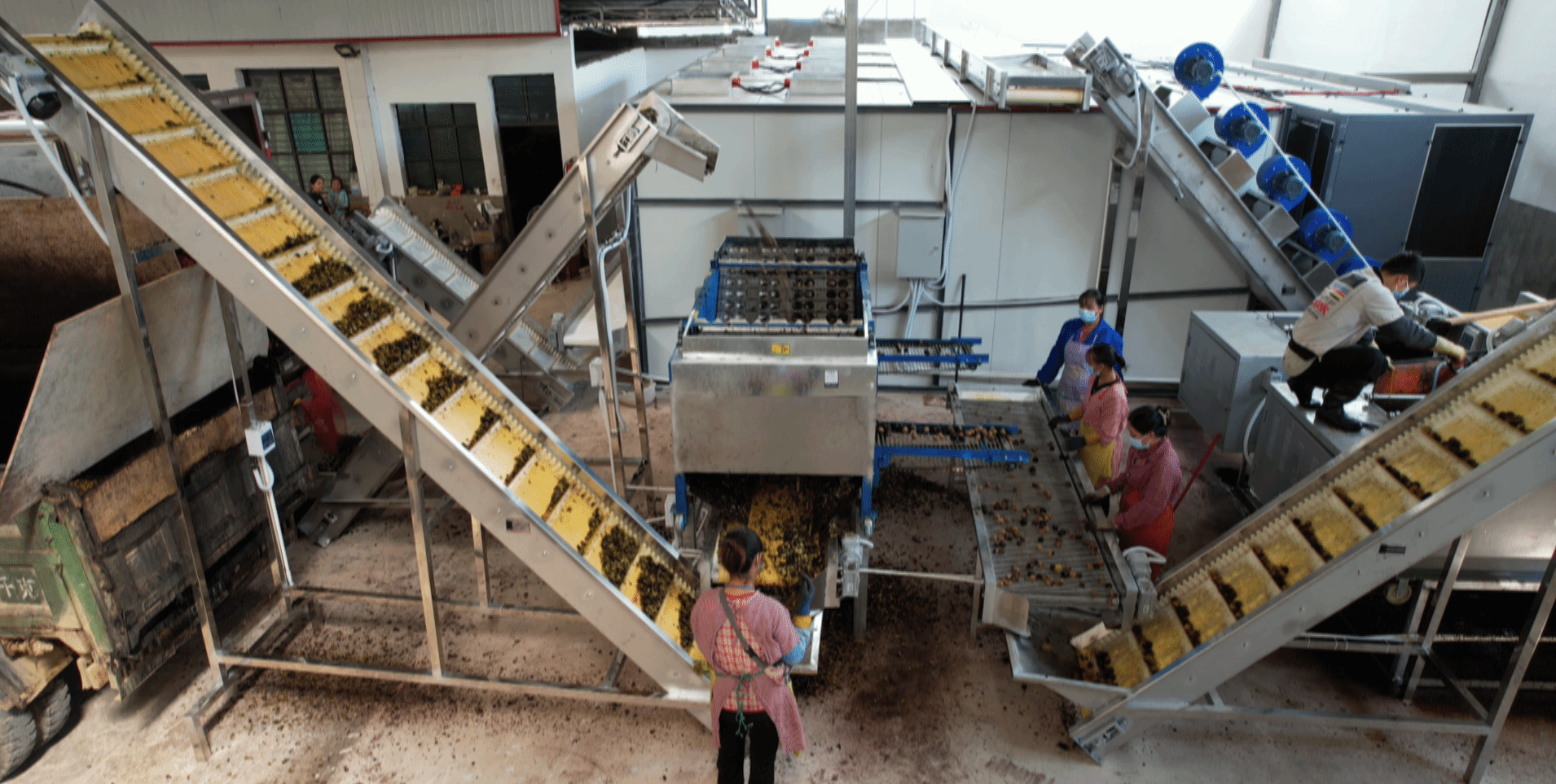 节约所得的成本,大部分都直接补助在了果农的身上,杨自成每斤多出的2角钱就是这么来的。收购到的嫩核桃,工人们直接倒入机器入口,通过传送带依次经过脱青皮、清洗、烘干、分级、包装等精细化处理,整条生产线运行状况良好,生产效率及产品质量均达到预期指标。