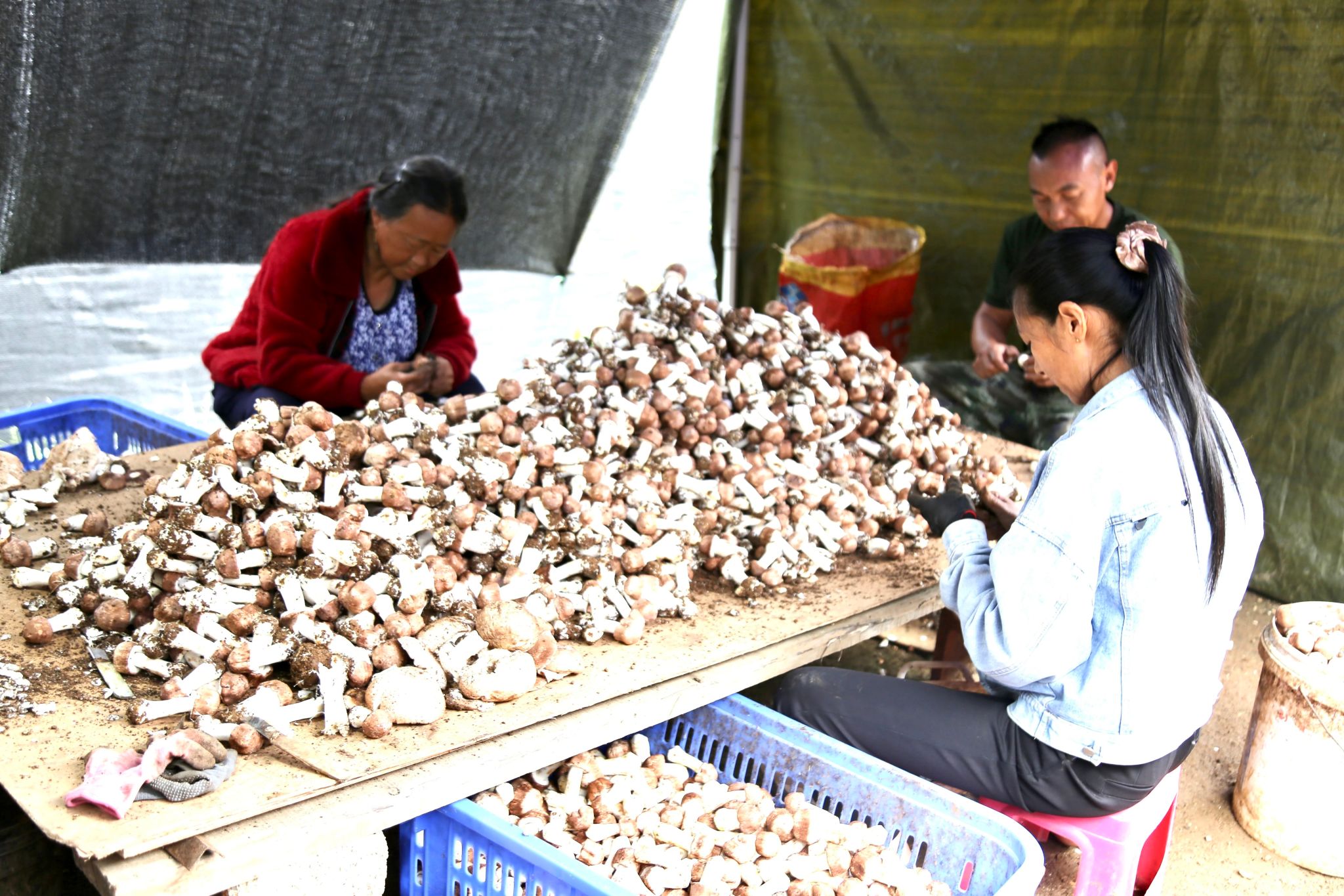 “由于生长速度极快,为了保证每一朵姬松茸都能在最佳状态时被采摘,工人们每天分3次掐着时间踩点采收。现在,每天帮忙采摘、削根的群众,收入可达80~100元/天。”麦地村党总支书记吴兴传说道。
