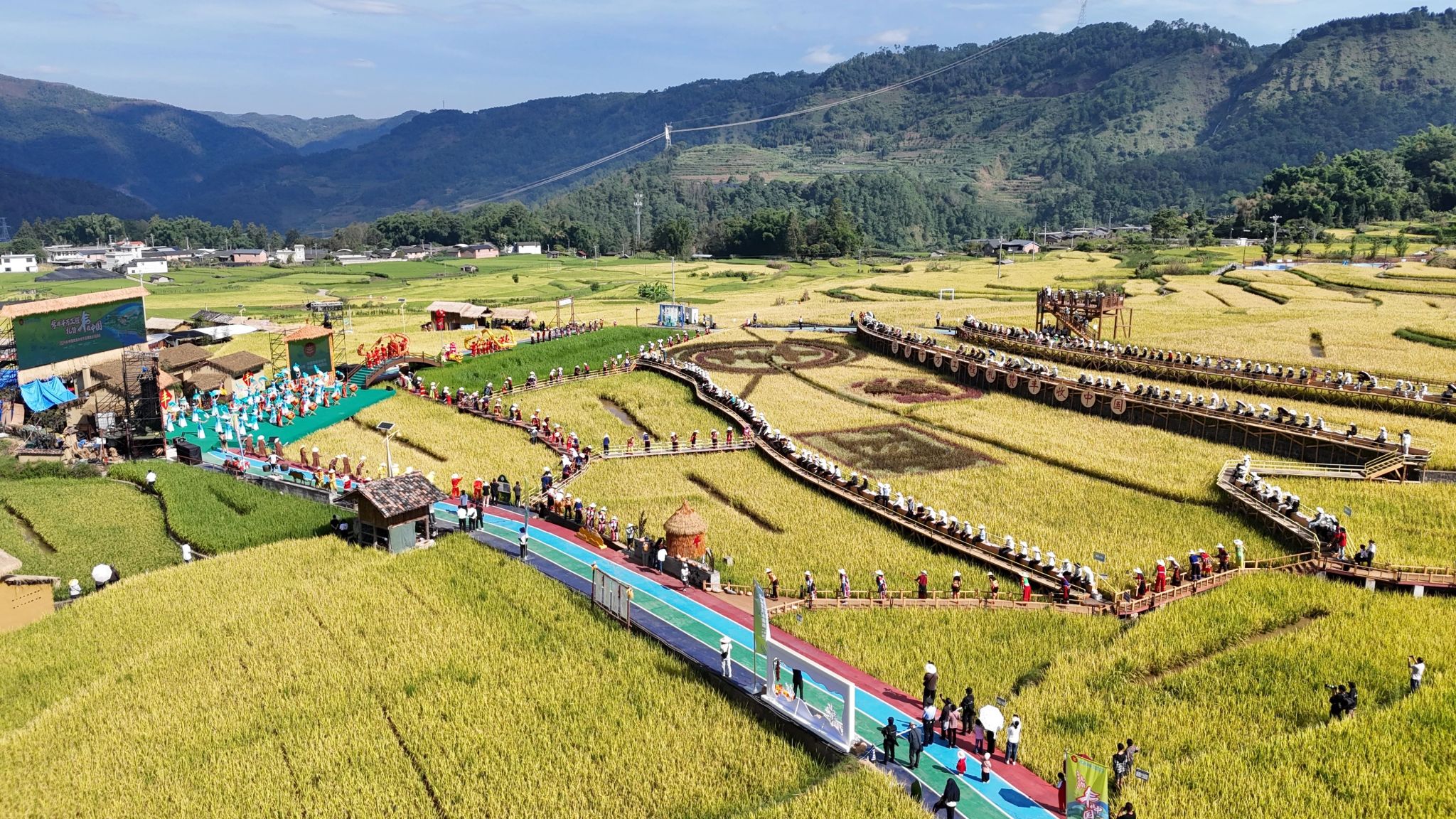 9月22日,以“学用‘千万工程’ 礼赞丰收中国”为主题的2024年中国农民丰收节云南省主场活动在龙陵县龙江乡拉开帷幕。八方游客与当地群众欢聚一堂,共观丰收、共晒丰收、共感丰收、共助丰收,沉浸式体验“有一种叫云南的生活”之幸福龙江。