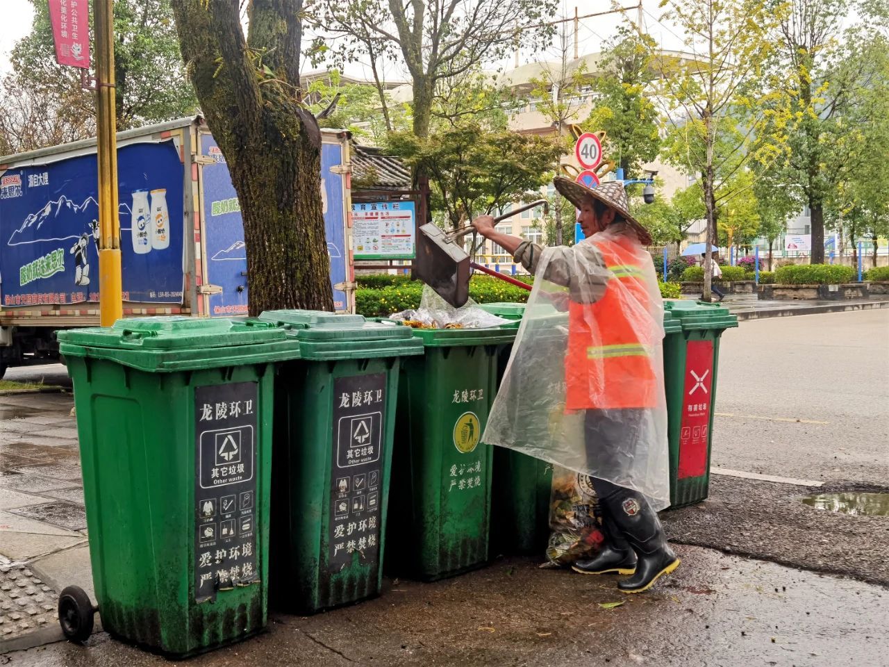 环卫工人将清扫的垃圾集中堆放在垃圾桶和垃圾房后,负责垃圾清运的工作人员便开始了一天的忙碌。他们一边驱车前往各个点收集垃圾,一边归类各类垃圾,然后才运往垃圾清理站集中处理。截至目前,龙陵县城共投放垃圾桶1392个,有垃圾清运车24辆,垃圾清运及无害化处理率达100%。