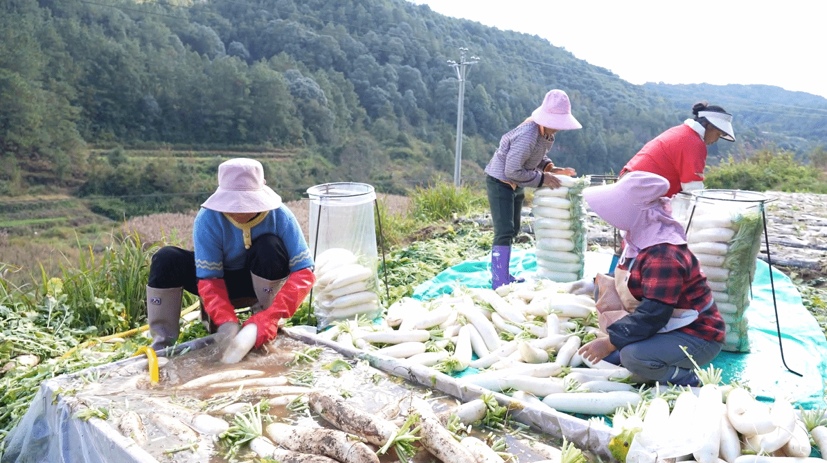”由于萝卜生长周期短,产量高,方便运输和储藏,一年内可轮种2季,在安乐村,高山萝卜已经成为主要产业之一,也成为了当地名副其实的致富“金果果”。“今年我们种植萝卜1000余亩,产量预计在1200吨左右,实现群众收入1400余万元。”平达乡安乐村党总支书记胡金伟告诉记者。