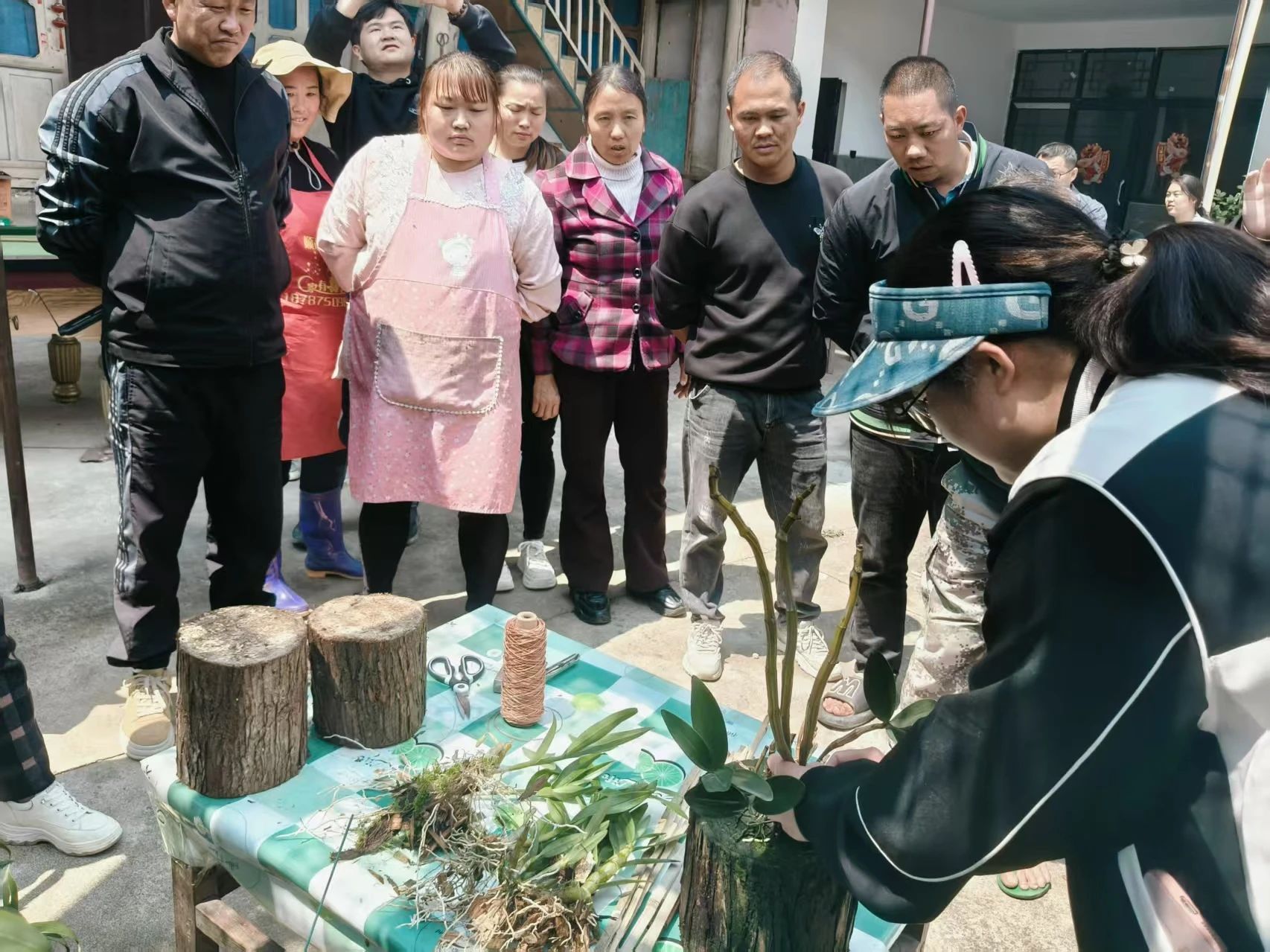 在平安村张家坡石斛花卉“庭院”示范基地,县石斛产业发展中心专家团队,针对当前石斛易发的病虫害防控、水肥管理、花期调控等难点问题,手把手为农户示范操作。通过“理论讲解+现场实操”模式,专家重点传授了石斛花卉种养阶段的温湿度调控、基质更换周期判断、有机肥精准施用、良品繁育等实用技术,并现场解答了农户关于花期延迟、叶片黄化等常见问题的解决方案。“以前凭经验种植,遇到病害只能盲目用药,现在专家教我们如何观察植株状态、科学调配营养液,成本降了,花品相更好了!”种植大户王丽萍在培训后感慨道,通过专家的现场指导,她对石斛花卉的种植管理更加有信心了。