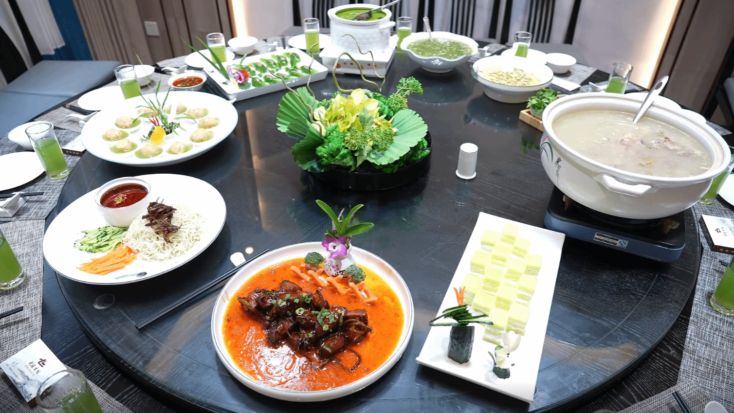 在龙陵,很多宾馆饭店还以“鲜条为材、花为点缀”制作成秀色可餐的石斛宴,石斛煲土鸡、石斛炖羊肉、石斛虾球、石斛花炖蛋、石斛红烧肉、石斛牛肉羹等这些搭配得当、清新爽口的菜肴成了假期热销。龙陵宾馆工作人员杨翠芹告诉记者:“自从石斛花开以后,来赏石斛花、吃石斛宴的游客数量就越来越多,我们每天都会接到5至8桌的预订,菜品也是各式各样的,五一假期前后预计我们收入在10多万元。”