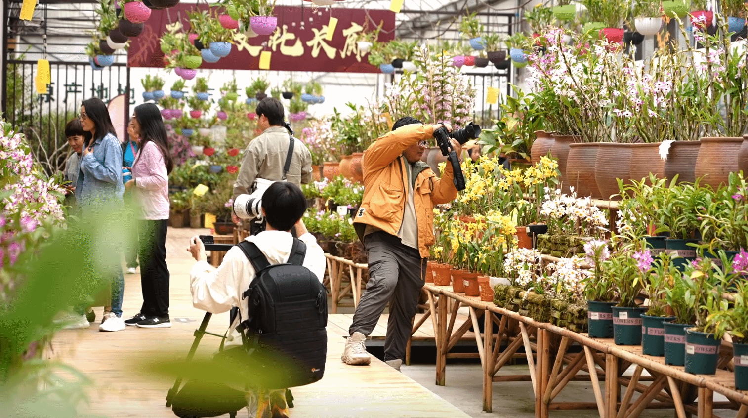 游客们穿梭在花丛间,纷纷用手机或相机记录下这美丽瞬间,沉醉在花花世界里。正在拍照的游客王先生感慨道:“这个石斛花也太美了,从来不知道有这么多的品种、这么多的颜色,而且造型也很奇特,我特别喜欢球花,是一种很夺目的美。”